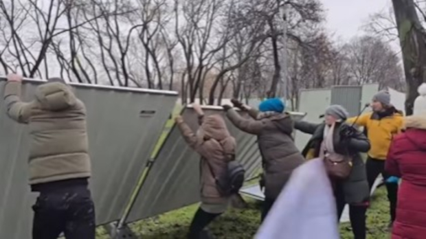Незадовољни због изградње акваријума и ограђивања простора, грађани су протестовали и оборили део металне конструкције. Полицијске снаге распоређене су дуж ограђеног простора.