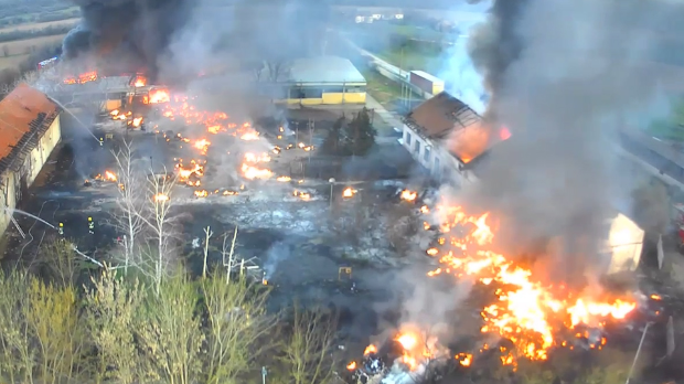 Како је запаљен пластични материјал, дим је црн и густ, а гашење дуже и отежано због ветра.