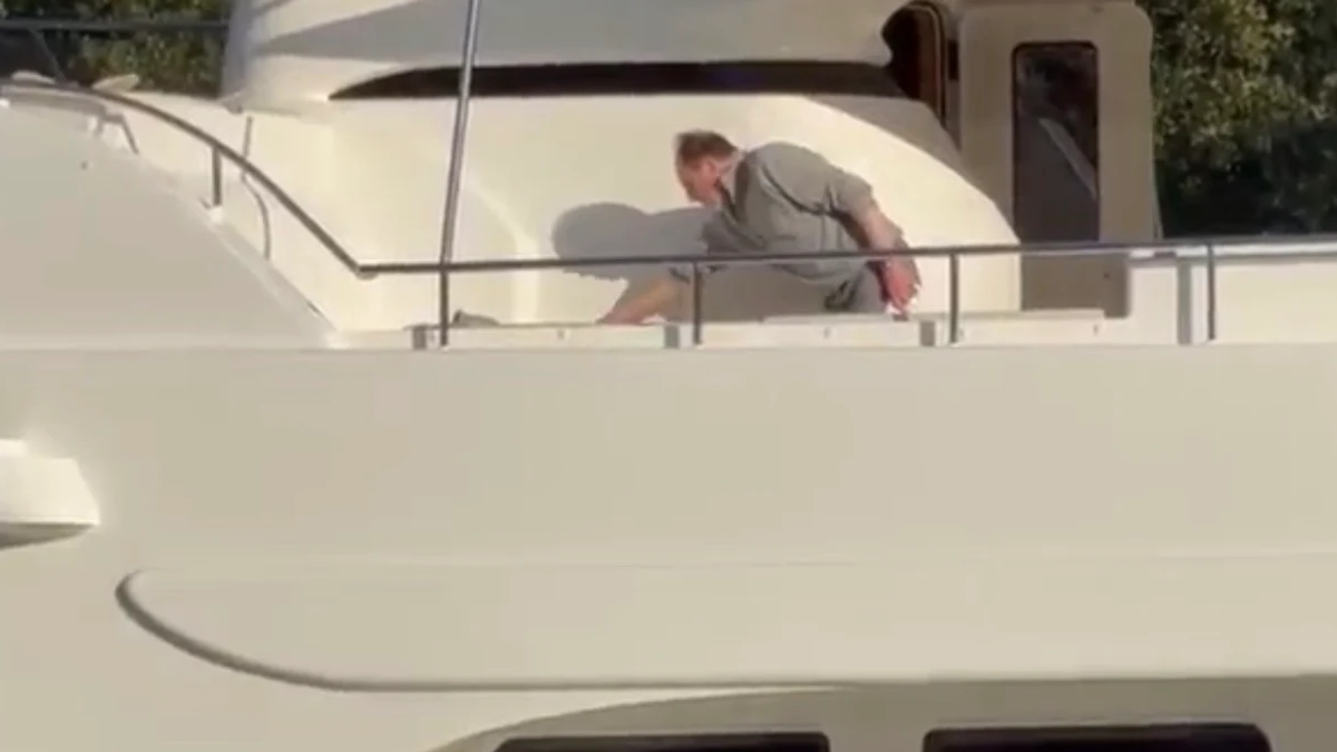 Dok se Melina sve vreme krila u kabini jahte, gde se u tajnosti pripremala za gala proslavu, mladoženja Džefri je uhvaćen u potpuno opuštenom izdanju. Odeven samo u džemper i farmerke je čistio po jahti i pažljivo slagao prekrivač na brodu.