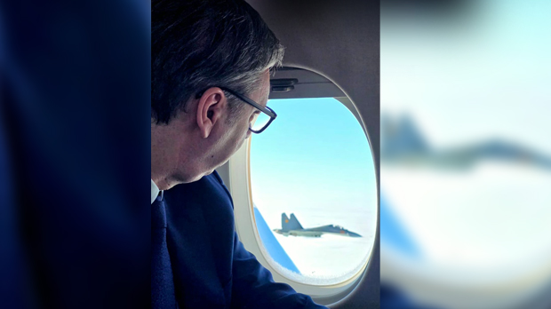 Председник Србије Александар Вучић изјавио је да у Астану стиже у пратњи три ловца “СУ 30”.