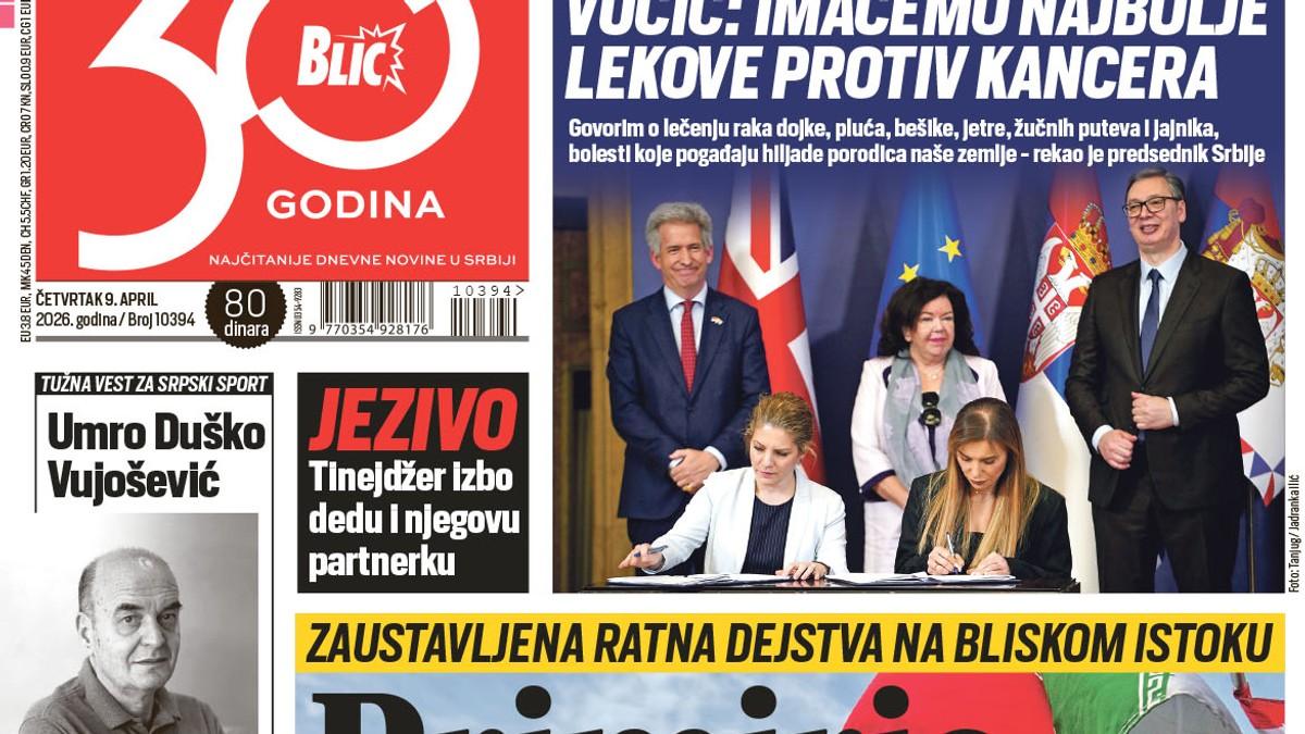 Vesti Naslovna strana za 9.4. April 9, 2026 0 Saznajte sve o najvažnijim vestima i događajima, pridružite se našoj Viber i WhatsApp zajednici ili čitajte na Google News.