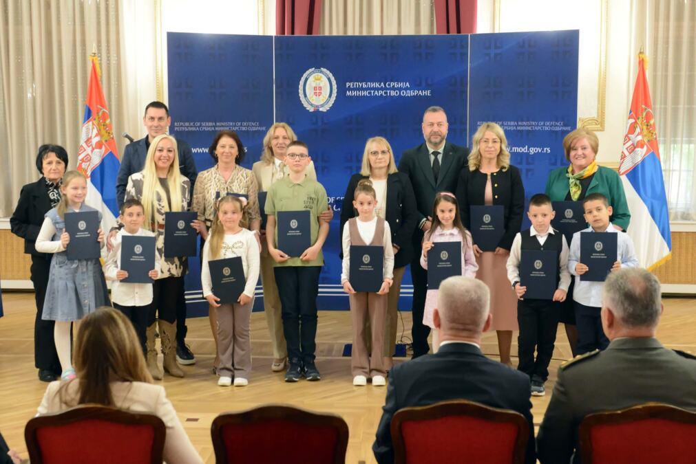 Komisija sastavljena od predstavnika Ministarstva odbrane i Ministarstva prosvete, u konkurenciji od oko hiljadu pristiglih radova izabrala je najbolje, kojima su danas uručene nagrade u vidu besplatnog sedmodnevnog boravka u objektima Ministarstva odbrane i Vojske Srbije namenjenim za odmor i rekreaciju na Tari, u Vrnjačkoj Banji i u Moroviću.