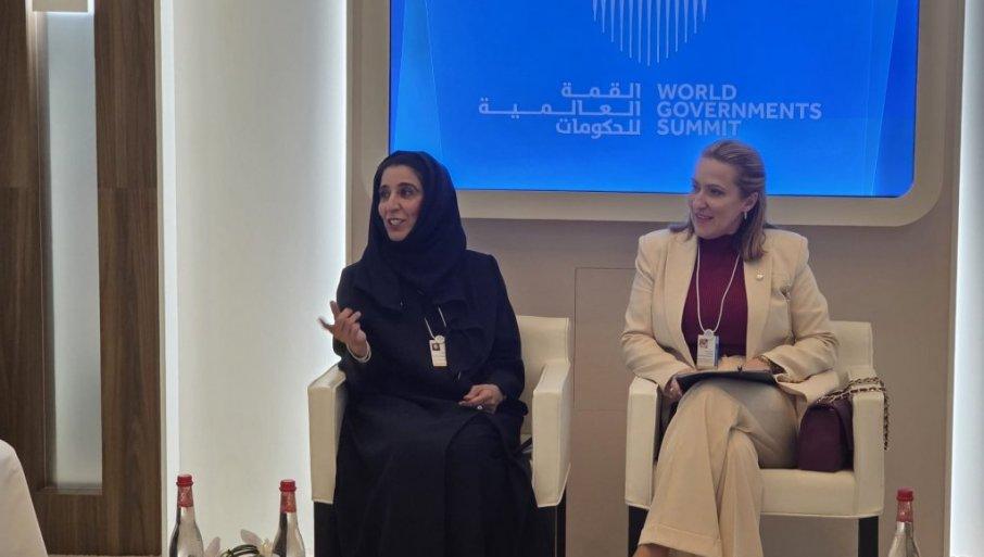 Tokom boravka u Dubaiju, ministarka Paunović održala je bilateralni sastanak sa ministarkom i generalnom sekretarkom Kabineta Vlade Ujedinjenih Arapskih Emirata, Nj. E. Marijam Alhamadi.