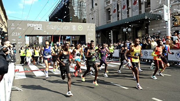 Полумаратонском трком на 21 километар, тачно у девет сати, почео је 39. Београдски маратон, који ће први пут у историји бити дводневни тркачки догађај. У полумаратону учествује 8.000 тркача. Победио је са новим рекордом полумаратона Кенијац Кумва, а у женској конкуренцији Џебет, такође из Кеније.