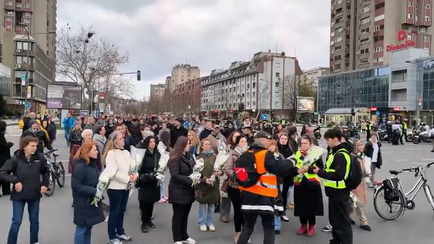 Након доласка на раскрсницу испред Железничке станице, читано је по једно име сваког од настрадалих у паду надстрешнице, након чега би грађани положили по један букет цвећа на месту трагедије.