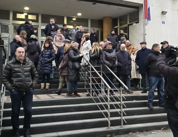 Ispred zgrade, u kojoj je smešten JTOK u Ustaničkoj ulici, ove blokadere – njih 1.200, dočekalo je svega 8 od 21 tužioca TOK na čelu sa šefom Mladenom Nenadićem.