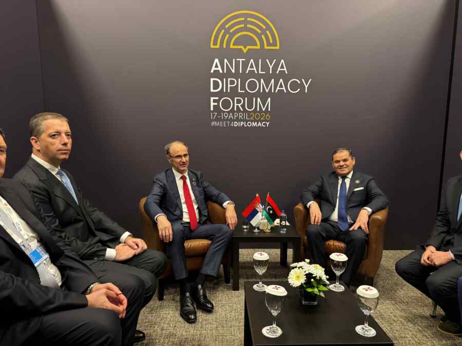 Predsednik Vlade Republike Srbije prof. dr Đuro Macut sastao se danas sa predsednikom Vlade Države Libije Abdulom Hamidom Dbeibehom na marginama Petog Antalijskog diplomatskog foruma (ADF2026), koji se održava u Antaliji, Republika Turska.
