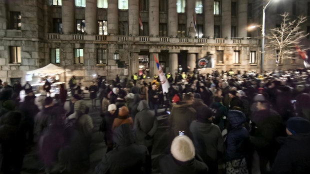 Група студената и грађана окупила се вечерас око 18 часова испред зграде Уставног суда, како би исказали противљење изменама правосудних закона које је парламент усвојио на предлог посланика Српске напредне странке Угљеше Мрдића.