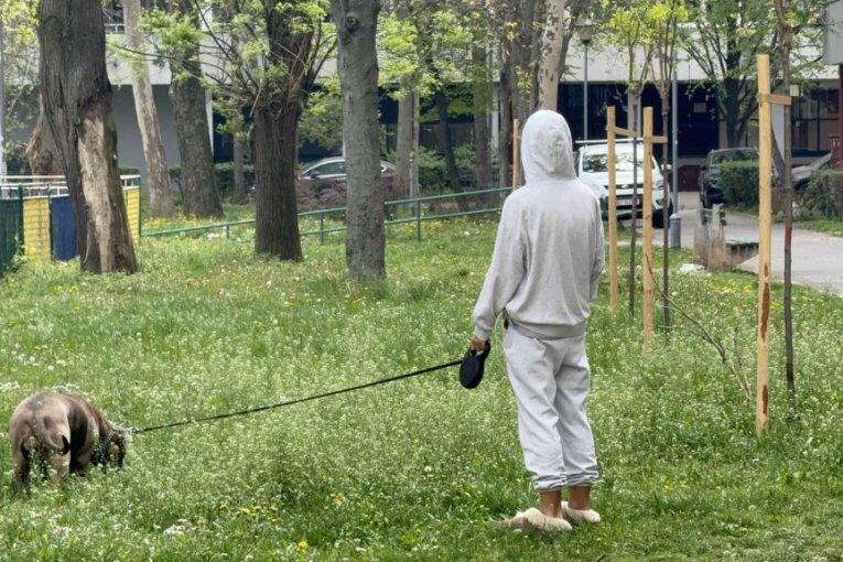 Šetnja sa ljubimcem: Marija je na kratko napustila stan kako bi izvela svog psa u šetnju oko zgrade.