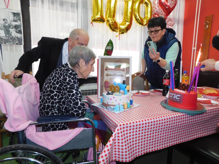 Dočekali su je baloni u obliku broja sto i velikog srca, kao i dve slavljeničke torte. Na jednoj je dominirala šivaća mašina pošto je slavljenica bila krojačica, kažu vrhunska, sa makazama, koncem, dugmadima, i pepeljara sa upaljenom cigaretom jer ona i danas uživa u duvanskom dimu. Druga torta poklon je SPS-a, čiji je ova nekadašnja skojevska (SKOJ-Savez komunističke omladine Jugoslavije), najstariji član, kako rekoše, ne samo u Malom Zvorniku već Srbiji, i socijalista je od osnivanja ove partije.