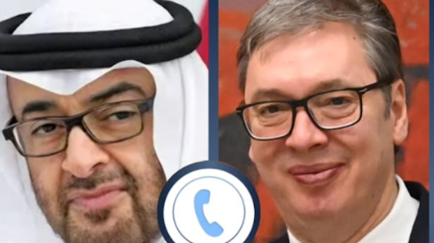 Председник Србије Александар Вучић разговарао је вечерас телефоном са председником Уједињених Арапских Емирата шеиком Мухамедом бин Заједом ел Нахјаном о актуелној ситуацији на Блиском истоку и озбиљној ескалацији која носи ризике по регионалну и глобалну безбедност.