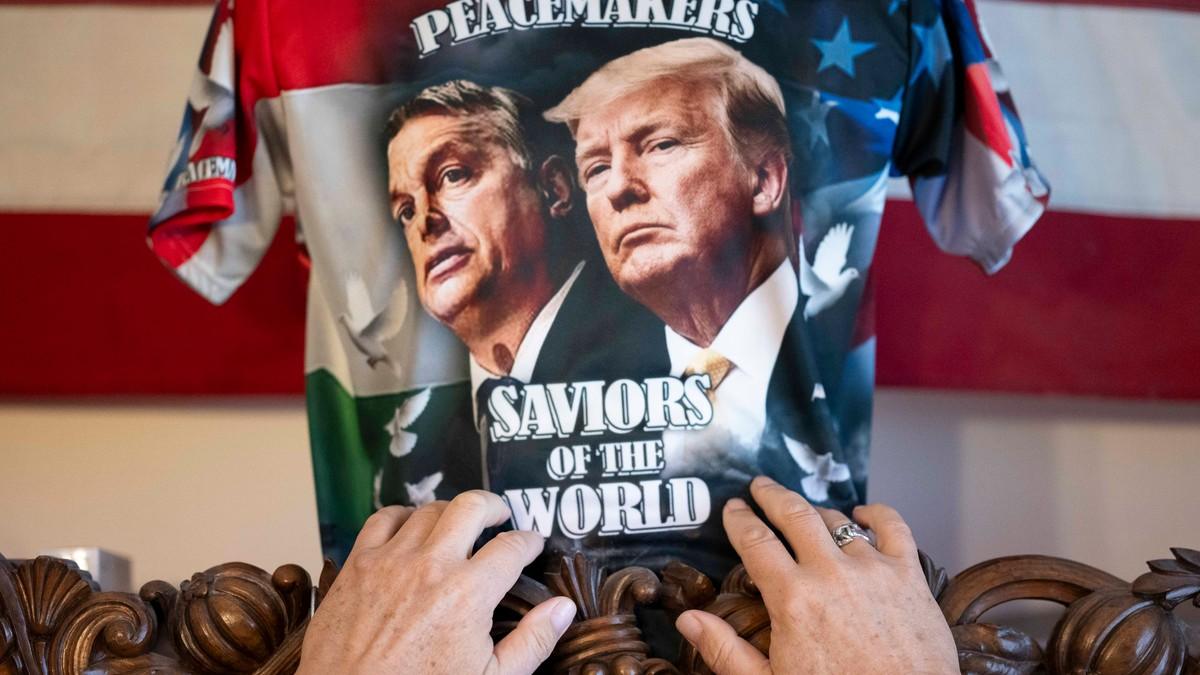 Majica sa likovima Viktora Orbana i Donalda Trampa (Foto: Denes Erdos / Tanjug/AP)