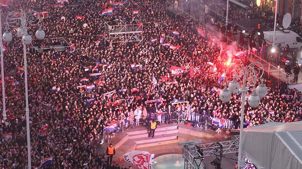Како је саопштено је из Полицијске управе загребачке за Хину, на главном загребачком тргу окупиле су се хиљаде навијача како би дочекале рукометну репрезентацију Хрватске, која је на Европском првенству одржаном у Данској, Норвешкој и Шведској освојила бронзану медаљу.